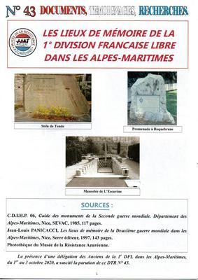 Documents, Témoignages , Recherches. n° 43 [Les lieux de mémoire de la 1ère division française libre dans les Alpes-Maritimes]