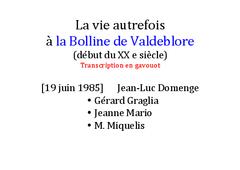 La vie autrefois à La Bolline-Valdeblore (début du XXe siècle) [TRANSCRIPTION Cassette n°1 ]
