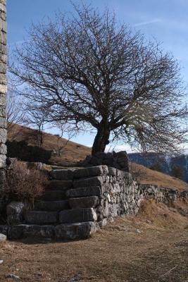 Détail de mur de terrasses en pierre sèche dans les marnes noires de La Sagne