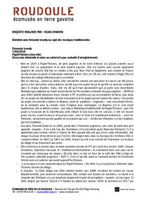 Entretien avec Fernande Isnardy au sujet des musiques traditionnelles