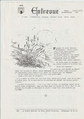 Entrevue, le Journal d'Entrevaux. Juillet-Août 1985