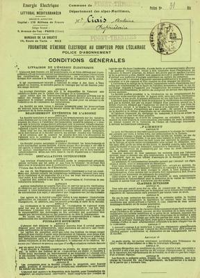 Fourniture d'énergie au compteur pour l'éclairage. Police d'Abonnement. Energie Electrique du littoral Méditerranéen.