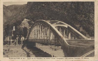 Plan-du-Var (A.-M.) - Pont de la Vésubie en béton armé. Longueur 100 mètres, hauteur 12 m.