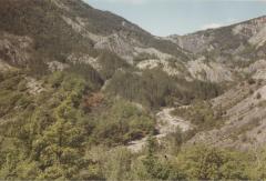 Versant raviné au canton de l'Espinasse et de la Jacquette dans les marnes oxfordiennes et les terrains crétacés au pied de la crête de l'Aurafort et formant la grande berge du torrent de Rivet