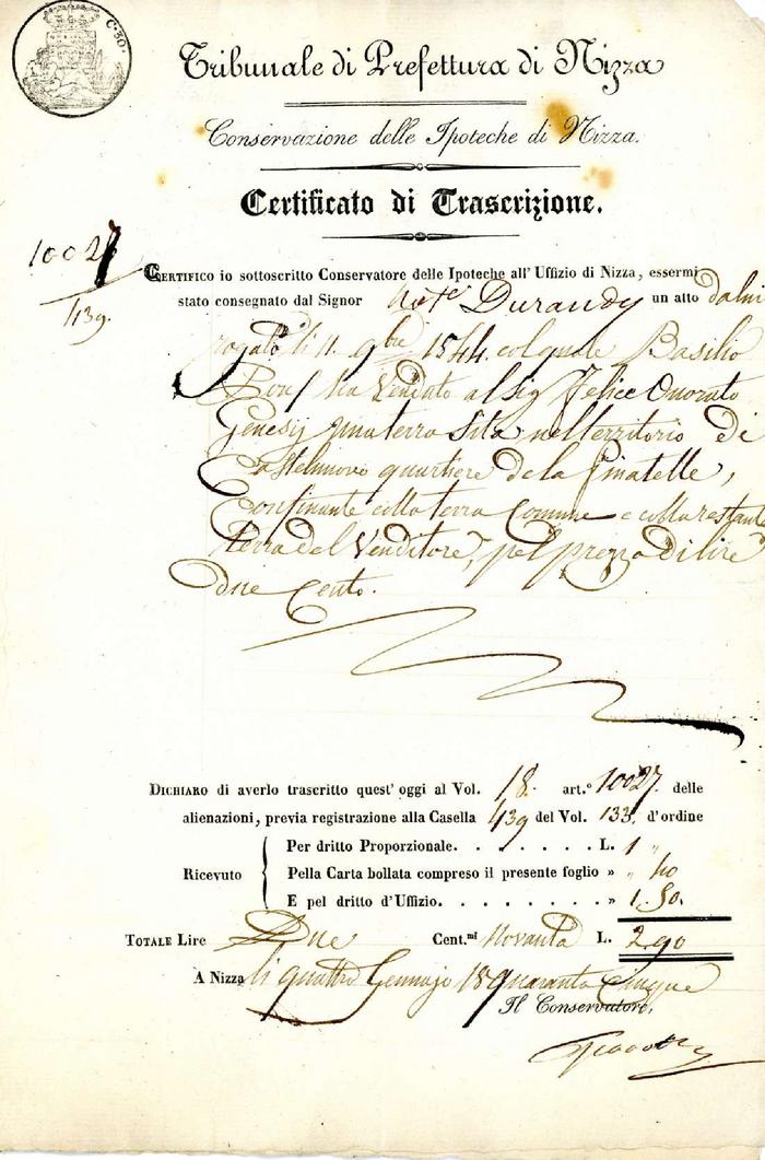 Certificato di Trascrizione
