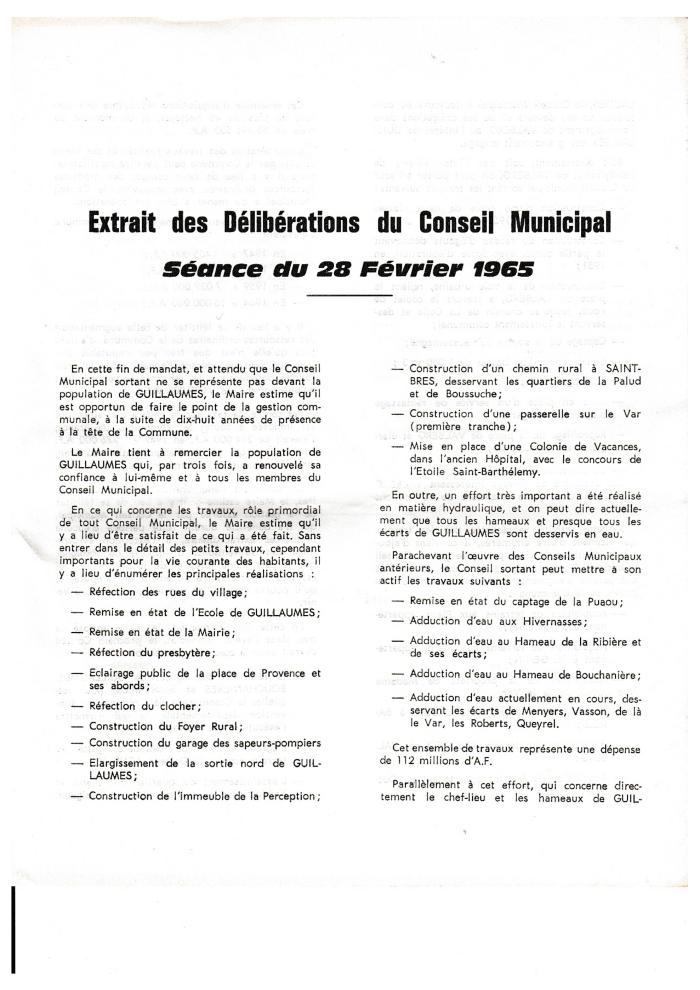 [Extrait des délibérations du Conseil Municipal de Guillaumes - 1965]