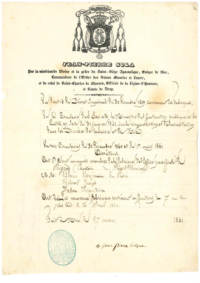 Sola_1861-27 Mars Nomination de 3 membres de la Fabrique (au dos)