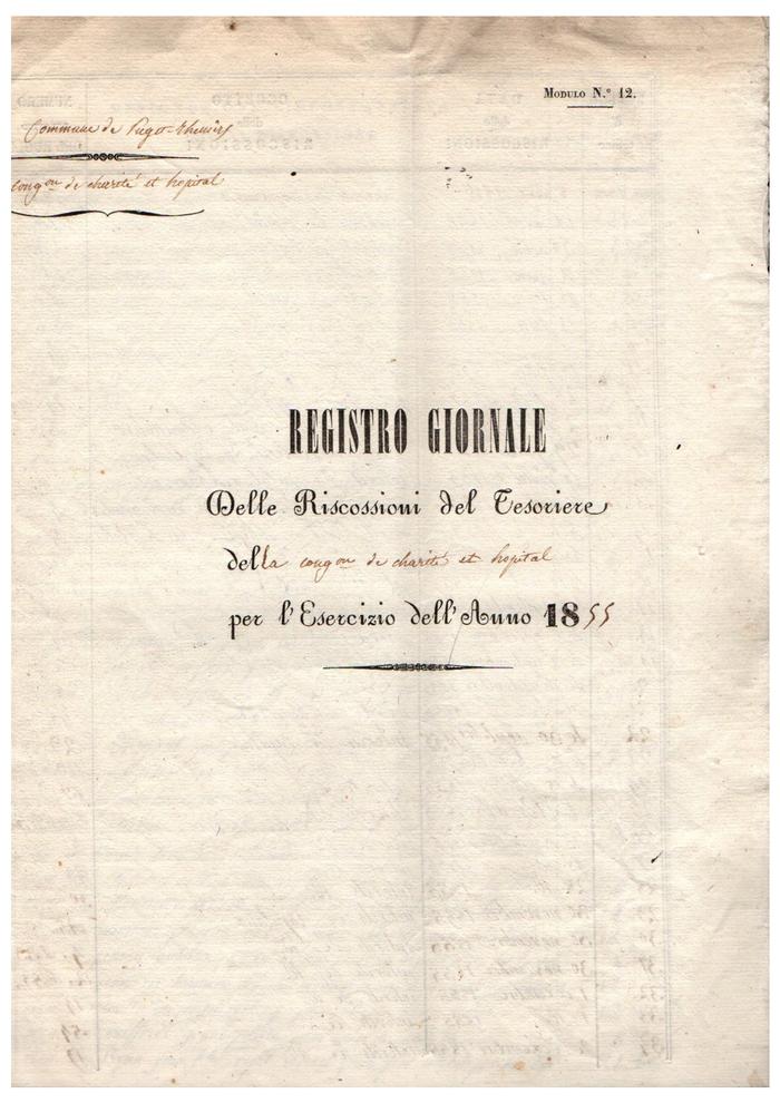 Registro Giornale delle Riscossioni del Tesoriere della Congregazione de Carità per l'Esercizio dell' Anno 1855