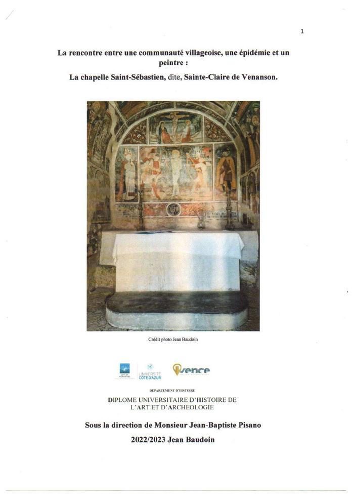 La rencontre entre une communauté villageoise, une épidémie et un peintre: La Chapelle Saint-Sébastien dite Sainte-Claire de Venanson