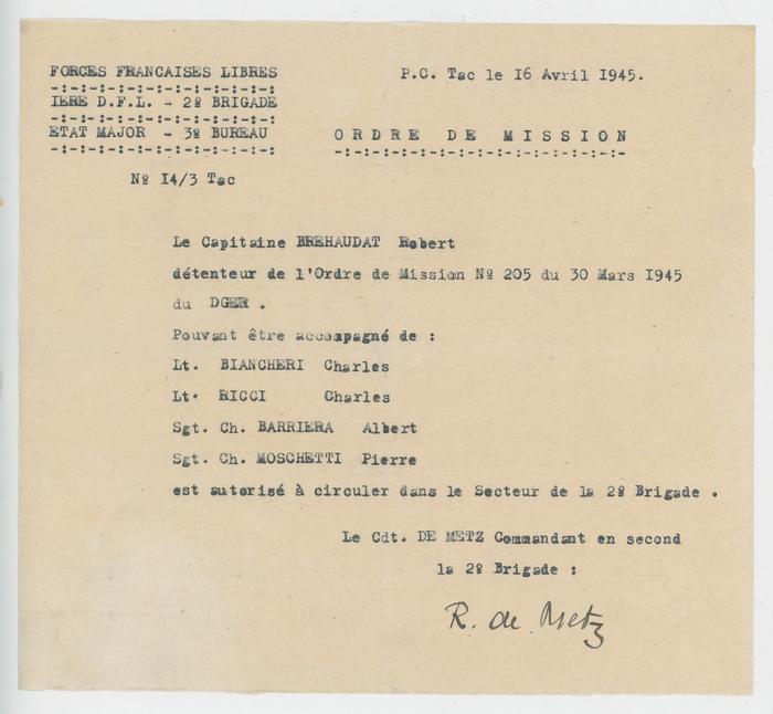 Ordre de mission - 1945