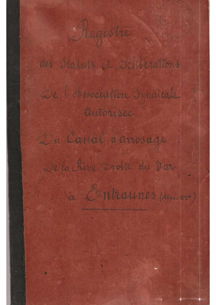 Registre des Statuts et délibérations de l'Association syndicale autorisée du canal d'arrosage de la Rive droite du Var à Entraunes (Alpes-Maritimes) - 1920