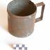 Description : Récipient sur plan circulaire, à bords moyens droits avec une anse en fer étamé de forme rectangulaire.