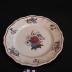 Description : Assiette sur plan circulaire, à bords bas avec un marli crenélé animé d'une bouquets. Au centre se trouve une composition florale plus garnie.