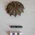 Description : motif circulaire représentant une fleur ouverte presque plate avec 12 pétales (genre de fleurs de pissenlit) qui renferme dans son calice et le motif identique mais de diamètre plus petit. Au milieu est la tête ronde d'une vis qui traverse la collerette et comporte un pas de vis a reçu une penture dégradée.