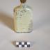 Description : Récipient de métal à fond plat, sur plan oblong, à bords hauts droits, à goulot et bouchon.
