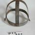 Description : Bande de métal de forme elliptique (encombrement en L 23 cm en lg 20,5 cm), quasi-circulaire, large de 3,2 cm, sur laquelle sont rivetées perpendiculairement 2 bandes de même largeur, en forme de "U" (1ère bande : enc. En Lg 24,5 cm , en H 22,5 cm ; seconde en Lg 23,3 cm en H 19 cm troisième) se croisant en étoile ménageant ainsi un volume très ajouré semi-ovoïde.