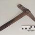 Description : Un marteau de section carré ((2x2 cm) L : 6,5 cm) perpendiculaire au manche. Une tête pointu de forme quadrangulaire. Le sommet s'incurve pour former la pointe. L'oeil est de forme ovale. Le manche est effilé à la base où il est de section rectangulaire puis ovale. Au sommet, il se termine par une tête faisant office d'encoche et ainsi que de marteau.