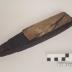 Description : Un support en écorce, creusé au dimension de la pierre afin de la sertir. Il est de forme oblongue. Une pierre à huile (15,5 x 5 cm) s'encastre dans l'écorce. Elle est collée à ce dernier par de la résine.
