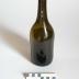 Description : Récipient en verre , sur plan circulaire (8 cm à la base) à bords hauts et droits , s'étrecissant vers le haut en encolure, présentant un goulot de 2,9 cm de D. Le fond est extrêmement convexe. Il forme une saillie de 5,5 cm à l'intérieur de la bouteille.
