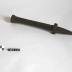 Description : Tige métallique dont la partie inférieure affecte la forme d'une pyramide allongée, point tourné vers le bas (L : 11,5 cm, Lg : 2,5 cm, E : 2,2 cm); puis la partie médiane vient dans la prolongation de cette pyramide. Elle est sur plan octogonal, en fait quasi circulaire (D : 2,5 cm, L : 19cm), enfin, la partie supérieure aplatie se présente comme un évasement de cette partie médiane (L /2 CM? D : 3 cm). A 10 cm du bas a été pratiqué un orifice rectangulaire (1,5x1 cm) dans lequel est enserré un arrêtoir.