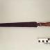 Description : Lame trapézoïdale au nez arrondi. Les dents sont obliques. La lame est rattachée à une soie noyée par un double empattement en forme de losange riveté. Le manche est cylindrique et il est muni d'une virole. Il se trouve dans le prolongement de la soie.