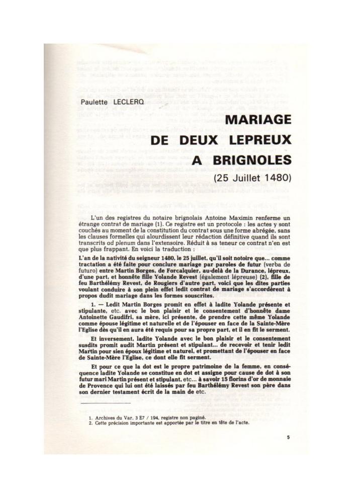 Mariage de deux lepreux à Brignoles (25 juillet 1480)