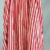 Description : Sous-vêtement féminin allant de la taille aux chevilles. Une bande de tissu est montée, froncée sur une ceinture de même tissu de 3,5 cm de large, on remarque à l'arrière une série de petits plis de 1 cm de large regroupés en fronces. A la base un grand ourlet de 15 cm. Un lacet plat prolonge la ceinture. Des traces de coutures anciennes font penser que le vêtement a subi des transformations, on peut penser que c'était initialement une jupe niçoise dont on aurait enlever les deux rubans noirs à la base. Tissu rayé blanc et rouge, rayures larges de 1 cm.