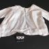 Description : Vêtement fendu dans le dos sans fermeture, des manches longues de 20 cm et larges de 9 cm. Un col Claudine fendu sur le devant. Les manches et le col portent une broderie blanche et sont bordés d'une fine dentelle blanche.