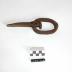 Précisions sur la fonction : Le coin se plante dans le cœur d'un tronc d'arbre. L'anneau sert à tracter l'arbre. On le fixe à un palonnier et l'animal de trait peut ainsi déplacer l'arbre lors des opérations de débardage.