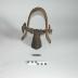 Les clavettes (L : 7 cm) ont la forme d'une virgule, elles sont échancrées sur la face convexe et s'encastrent dans l'ensemble des 3 lanières de cuir.