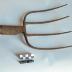 Description : Fourche à 4 dents incurvées vers le manche. Elle est munie d'une douille obtenue à la forge en étirant et aplatissant la matière puis en la cintrant pour obtenir un tube fermé. La douille est percée d'un trou qui permet le passage d'un clou forgé qui s'enfonce dans le manche (absent).