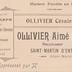 Description : Carte de représentant de la fabrique d'Ollivier Aymé, successeur d'Ollivier Césaire.