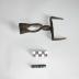 Description : Pince formée de deux branches en acier carré dont le ressort est constitué d'une lame d'acier bondée reliant les deux pinces à leur extrémité. Les deux autres extrémités sont munies de deux fers en "U" pointus perpendiculaires. Dims. 9,5 x 5 cm