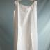Description : Chemise sans manche en toile de coton blanc. Une large encolure peut être resserrée par un lacet plat. L'encolure et les emmanchures sont ornées d'une broderie faite au point de feston. Sur la poitrine, les deux initiales ont été brodées. La chemise va en s'évasant à partir des bras vers le bas. Sous les bras, la largeur est de 56 cm et de 78 cm au bas de la chemise.