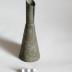 Description : Composé d'un tronc de cône de 14,5 cm de hauteur. Le diamètre de l'ouverture est de 9 cm, celui de la partie rétrécie est de 3 cm. Ce tronc de cône est prolongé par un cylindre (L : 8,5 cm D : 3 cm) se terminant en biseau. La tôle a été cintrée et soudée tout le long, la partie cylindrique a été soudée sur la partie conique.