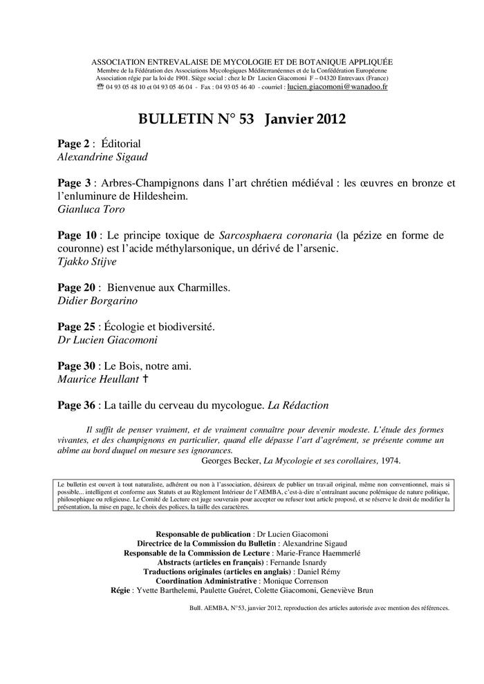Bulletin de l'AEMBA (Association Entrevalaise de Mycologie et de Botanique Appliquée) ➜ Bulletin de l'Aemba n°53 -