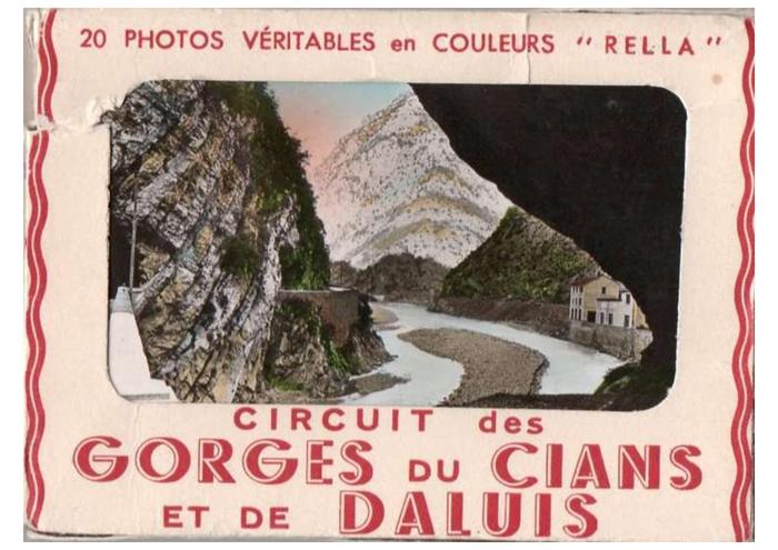 Description : Carnet-pochette de vingt photographies "véritables" en couleurs numérotées faisant partie d'un ensemble intitulé "Circuit des Gorges du Cians et de Daluis publié par les Editions "Rella".