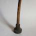 Description : Bloc d'acier constitué d'une semelle (D 8 cm H : 2,5 cm) surmontée d'une douille servant de logement au manche de section circuliare (L : 29 cm). Un bout de chiffon sert de calage au manche.