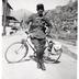Description : Gendarme Richard 1 à vélo à la sortie de Guillaumes en direction d'Entraunes. En arrière plan à droite l'ancienne colonie de vacances 2