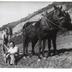 Description : Prosper et Alfred (?) Ollivier 1 labourent avec une araire tirée par deux chevaux