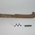 Description : Fer large de 4 cm recourbé avec un bec tranchant. Fer aiguisé qui se prolonge par une soie qui traverse toute la longueur d'un manche cylindrique en bois. La soie est maintenue à l'extérieur par une rondelle métallique (L du manche : 11 cm). Une virole, à la naissance de la soie la maintient en place dans le manche.