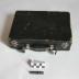 Description : Petite valise en bois toilé de noir à l'extérieur, le couvercle est fixé au fond par deux charnières. L'intérieur du couvercke est recouvert de feutre rouge, l'intérieur du fond est recouvert d'une fine peausserie rouge. Le fond est divié en trois compartiments. Un grand (17,5 x15,5x4 cm) un moyen (6,8x5 x4 cm) un petit (8,3x5x2,5 cm) les compartiments moyens et petits sont dans le prolongement l'un de l'autre. La cloison qui les sépare est de faible hauteur. La valise se fermem par deux fermeture à levier, elle est muni d'une poignée en cuir.