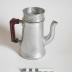 Description : 1/ Récipient de section circulaire à fond plat de diamètre décroissant en allant vers le sommet (D de 10 cm à 8 cm). Bec verseur de 11 cm ; une anse isolante en bakélite grenat (Ht : 10 cm)