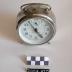 Description : Réveil rond monté sur trois pieds. Une poignée sur le dessus rabattable, cadran blanc, aiguilles et chiffres noirs; un trait pour chaque minute, un petit rectangle toutes les 5 minutes, un petit cadran avec chiffres de 1 à 12 et une petite aiguille pour programmer la sonnerie à arrêt automatique.
