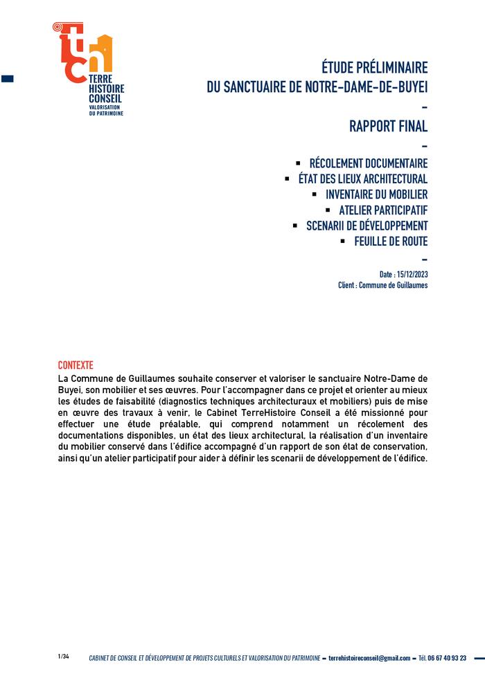 Rapport final sur l'étude préliminaire du sanctuaire de Notre-Dame-de-Buyë à des fins de conservation et de valorisation