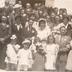 Description : Photographie devant l'église Saint-Pons à Sausses (04) de Marcel Borelly et Elvire Mengeaud le 8 juin 1947.