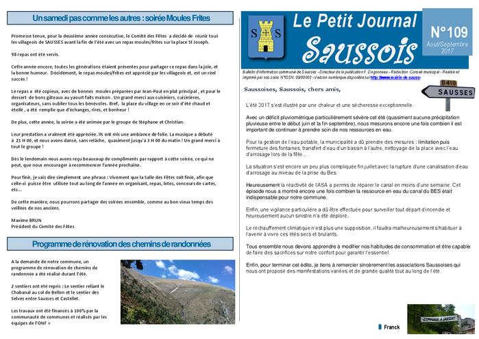 Le Petit journal saussois ➜ Le Petit journal saussois n°109