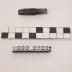 Description : Paquet de quinze lames de scie, toutes identiques. Une lame mesure 16 cm. A partir de ses deux extrémités et sur une longuer de 38 mm (de part et d'autre des 49 dents), la lame est lisse. Les dents s'étendent sur 84 mm, chacune d'entre elles mesure 0,4 mm et leur écartement est de 1,7 mm. Objet non retrouvé lors du recollement de novembre 2006.