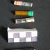 Description : 2005_152_1 : tube en verre à section circulaire, bords droits, fermé par un bouchon de liège. L'étiquette porte le nom de la marque en lettres rouges. Le tube contient 5 pierres dont les dimensions sont H : 0,5 cm et D : 0,1 cm.