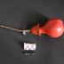 Description : Appareil constitué d'une poire en caoutchouc rouge aplatie sur la base, elle se prolonge vers le haut en un goulot de 2,5 cm de diamètre. Ce goulot est recouvert d'une cloche en caoutchouc. Dans ce goulot pénètre un tube de 0,5 cm de diamètre qui se compose de 3 segments qui se vissent les uns sur les autres. Le segment 2 est courbe, le segment 3 s'amincit à son sommet et se termine par un orifice de 0,1 cm de diamètre. Une petite pomme d'arrosoir percée de 7 trous peut se visser sur les segments 1 ou 2.